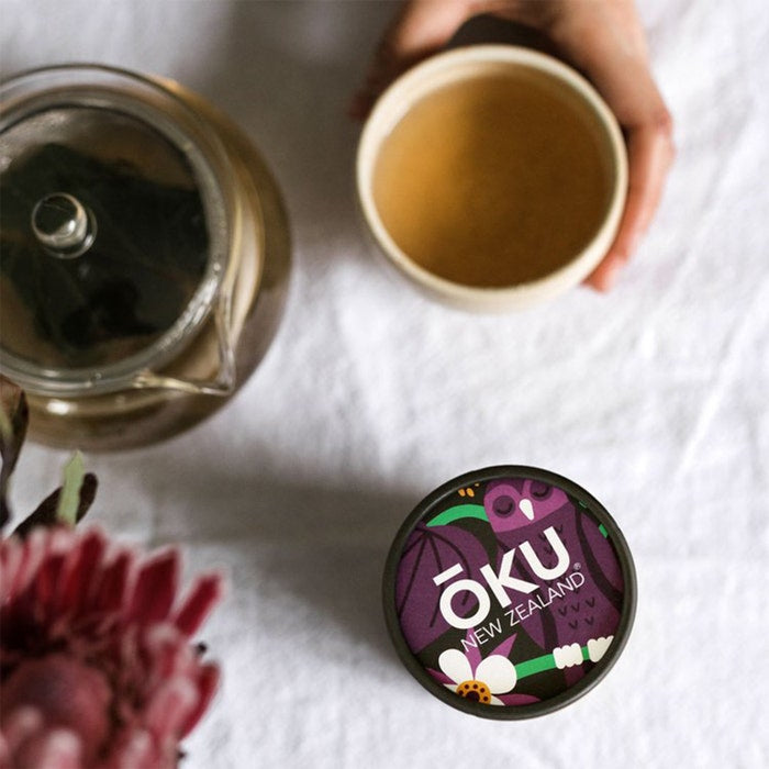 ☕ Relax Tea by ŌKU — a calming blend of Kānuka, Tātarāmoa, and organic herbs to soothe the body and mind.