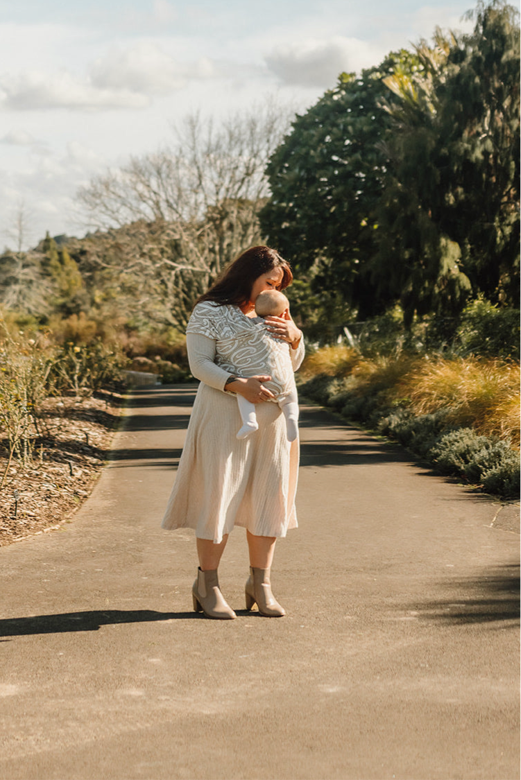Made from 100% jersey cotton with a gentle two-way stretch, it is soft, breathable, and designed to mould comfortably around both mama and pēpi without losing shape. Inclusive and practical, the Okooko Pēpi is designed to fit all body types, making everyday babywearing easy and supportive.